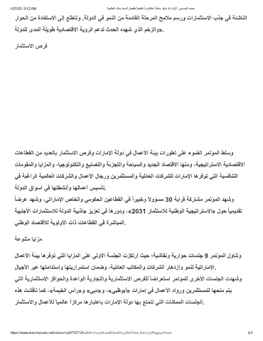 تﺎﻋﺎطﻘﻟا نﻣ دﯾدﻌﻟﺎﺑ رﺎﻣﺛﺗﺳﻻا صرﻓو تارﺎﻣﻹا ﺔﻟود ﻲﻓ لﺎﻣﻋﻷا ﺔﺋﯾﺑ تاروطﺗ ﻰﻠﻋ ءوﺿﻟا رﻣﺗؤﻣﻟا طﻠﺳو
