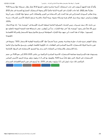 %35 ﺔﺒﺴﻨﺑ اًﻮﻤﻧ ﺔﻠﺠﺴﻣ ،رﻻود رﺎﯿﻠﻣ 30.6 ﺎﮫﺘﻤﯿﻗ تزوﺎﺠﺗ ةﺮﺷﺎﺒﻣ ﺔﯿﺒﻨﺟأ تارﺎﻤﺜﺘﺳا بﺬﺟ ﻲﻓ ﺖﻤﮫﺳأ دﻮﮫﺠﻟا هﺬھ نأ ﺪﻛأو