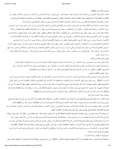 ةرﻛﺗﺑﻣ ﺔﯾﻧطو تﺎﯾﺟﯾﺗارﺗﺳاو ىؤر تﻧﺑﺗ ،ةدﯾﺷرﻟا ةدﺎﯾﻘﻟا تﺎﮭﯾﺟوﺗ لﺿﻔﺑ تارﺎﻣﻹا ﺔﻟود نأ ،رﺎﻣﺛﺗﺳﻻا رﯾزو ،يدﯾوﺳﻟا نﺳﺣ دﻣﺣﻣ ﻲﻟﺎﻌﻣ دﻛأو