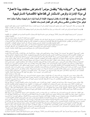 ﺪﻳﺪﻌﻟﺎﺑ رﺎﻤﺜﺘﺳﻻا صﺮﻓو تارﺎﻣﻹا ﺔﻟود ﻲﻓ لﺎﻤﻋﻷا ﺔﺌﯿﺑ تارﻮﻄﺗ ﻰﻠﻋ ءﻮﻀﻟا ﻂﯿﻠﺴﺗ فﺪﮫﺑ ،اﺮﻤﺗﺆﻣ "ﻚﻨﺑ ﻪﺸﺘﻳود" ﻊﻣ نوﺎﻌﺘﻟﺎﺑ "ﺎﯿﺑﻮﺘﺴﻔﻧإ" ﺖﻤﻈﻧ