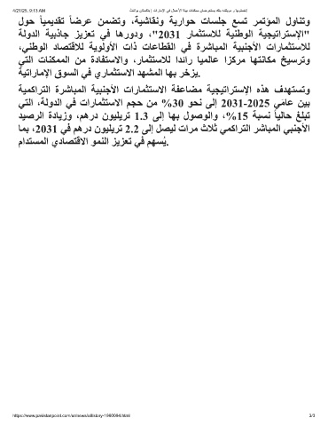 ﺔﻟوﺪﻟا ﺔﯿﺑذﺎﺟ ﺰﯾﺰﻌﺗ ﻲﻓ ﺎھرودو ،"2031 رﺎﻤﺜﺘﺳﻼﻟ ﺔﯿﻨطﻮﻟا ﺔﯿﺠﯿﺗاﺮﺘﺳﻹا"