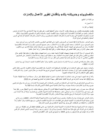 يجيتارتسا عقوم اهزربأ نمو ،تاراملإا ةلود اهحيتت يتلا ،تانكمملاو صرفلا نم ةدافتسلاا ىلإ ثدحلا اذه يف نيكراشملا يديوسلا اعدو
