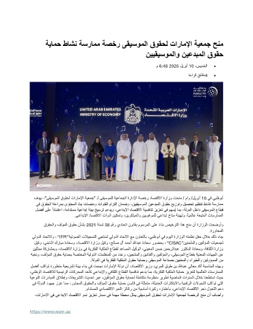 فدهب ،"ىقيسوملا قوقحل تاراملإا ةيعمج" ـل ىقيسوملل ةيعامجلا ةرادلإا ةصخر داصتقلاا ةرازو تحنم / ماو /ليربأ 10 يف يبظوبأ