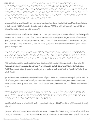 عﺎطﻗ ﻲﻓ رﺎﻣﺛﺗﺳﻻا زﻔﺣﺗو نﯾﻋدﺑﻣﻟا قوﻘﺣ نﻣﺿﺗ ﺔﻣﻋاد ﺔﺋﯾﺑ رﯾﻓوﺗ ﻰﻟإ ﺔﻟودﻟا ﻰﻌﺳﺗ ثﯾﺣ ،ﺔﯾﻋادﺑﻹاو ﺔﯾﻓﺎﻘﺛﻟا تﺎﻋﺎﻧﺻﻠﻟ ﺔﯾﻧطوﻟا ﺔﯾﺟﯾﺗارﺗﺳﻹا