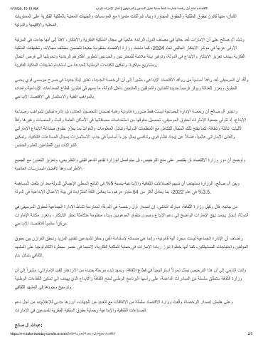 ﺔﻟودﻟا ﻲﻓ ﺔﯾﻋادﺑﻹا لﺎﻣﻋﻷا ﺔﺋﯾﺑ ﻲﻓ ةدﯾازﺗﻣﻟا ﺔﻘﺛﻟا سﻛﻌﯾ ﺎﻣ ،مھرد رﺎﯾﻠﻣ 54 نﻣ رﺛﻛأ لدﺎﻌﯾ ﺎﻣﺑ ،2022 مﺎﻋ ﻲﻓ %3.5.
