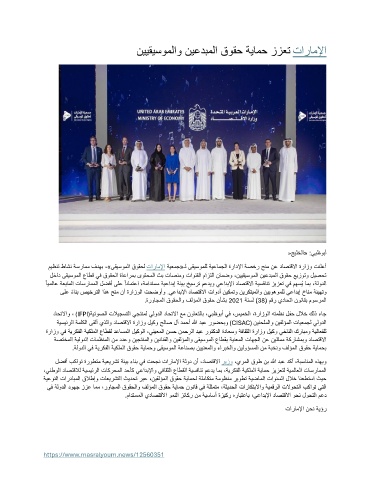 ميظنت طاشن ةسرامم فدهب ،»ىقيسوملا قوقحل تاراملإا ةيعمج«ـل ىقيسوملل ةيعامجلا ةرادلإا ةصخر حنم نع داصتقلاا ةرازو تنلعأ