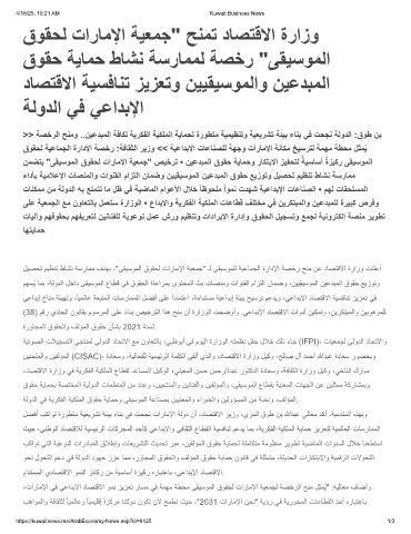 ،تارﺎﻣﻹا ﻲﻓ ﻲﻋادﺑﻹا دﺎﺻﺗﻗﻻا وﻣﻧ زﯾزﻌﺗ رﺎﺳﻣ ﻲﻓ ﺔﻣﮭﻣ ﺔطﺣﻣ ﻰﻘﯾﺳوﻣﻟا قوﻘﺣﻟ تارﺎﻣﻹا ﺔﯾﻌﻣﺟﻟ ﺔﺻﺧرﻟا ﺢﻧﻣ لﺛﻣُﯾ" :ﮫﯾﻟﺎﻌﻣ فﺎﺿأو