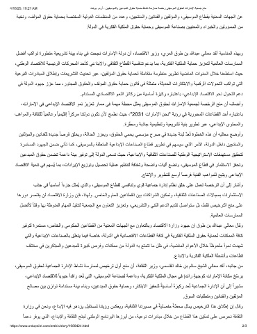 ،تارﺎﻣﻹا ﻲﻓ ﻲﻋادﺑﻹا دﺎﺻﺗﻗﻻا وﻣﻧ زﯾزﻌﺗ رﺎﺳﻣ ﻲﻓ ﺔﻣﮭﻣ ﺔطﺣﻣ لﺛﻣﯾ ﻰﻘﯾﺳوﻣﻟا قوﻘﺣﻟ تارﺎﻣﻹا ﺔﯾﻌﻣﺟﻟ ﺔﺻﺧرﻟا ﺢﻧﻣ نأ فﺎﺿأو