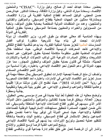 ﻦﯿﻨﺤﻠﻤﻟاو “CISAC”، ةرازو ﻞﯿﻛو ،ﺢﻟﺎﺻ لآ ﺪﻤﺣأ ﷲﺪﺒﻋ ةدﺎﻌﺳ رﻮﻀﺤﺑ