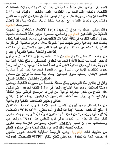 ﻦﯿﻨﺤﻠﻤﻟاو “CISAC”.. ،ﻰﻘﯿﺳﻮﻤﻟا قﻮﻘﺤﻟ تارﺎﻣﻹا ﺔﯿﻌﻤﺠﻟ ﺺﯿﺧﺮﺘﻟا ﺢﻨﻣ نإ