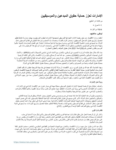 ،تاراملإا يف يعادبلإا داصتقلاا ومن زيزعت راسم يف ةمهم ةطحم ىقيسوملا قوقحل تاراملإا ةيعمجل ةصخرلا حنم لثمُي« :فاضأو