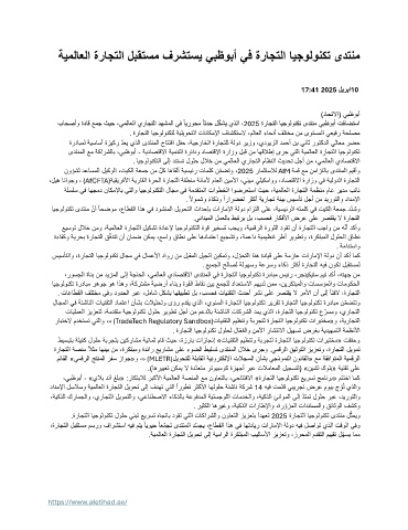 ىدتنملا عم ةكارشلاب ،يبظوبأ - ةيداصتقلاا ةيمنتلا ةرئادو داصتقلاا ةرازو لبق نم اهقلاطإ ىرج يتلا ةيملاعلا ةراجتلا ايجولونكت