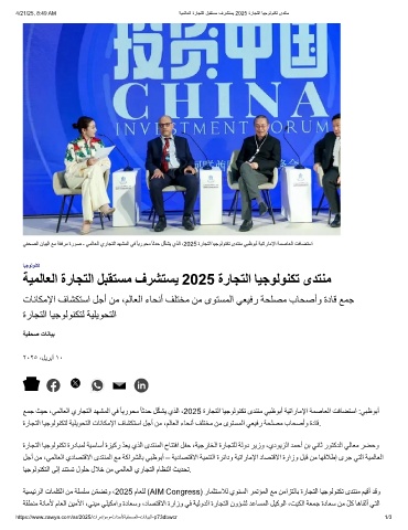 ﻲﻔﺣﺻﻟا نﺎﯾﺑﻟا ﻊﻣ ﺔﻘﻓرﻣ ةروﺻ - ﻲﻣﻟﺎﻌﻟا يرﺎﺟﺗﻟا دﮭﺷﻣﻟا ﻲﻓ ً ﺎﯾروﺣﻣ ً ﺎﺛدﺣ لّﻛﺷﯾ يذﻟا ،2025 ةرﺎﺟﺗﻟا ﺎﯾﺟوﻟوﻧﻛﺗ ىدﺗﻧﻣ ﻲﺑظوﺑأ ﺔﯾﺗارﺎﻣﻹا ﺔﻣﺻﺎﻌﻟا تﻓﺎﺿﺗﺳا