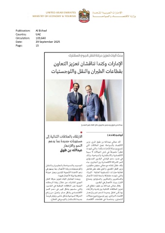 Publication: Al Etihad Country: UAE Circulation: 109,640 Date: 29 September 2025 Page: 15