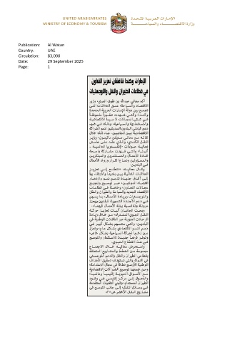 Publication: Al Watan Country: UAE Circulation: 83,000 Date: 29 September 2025 Page: 1