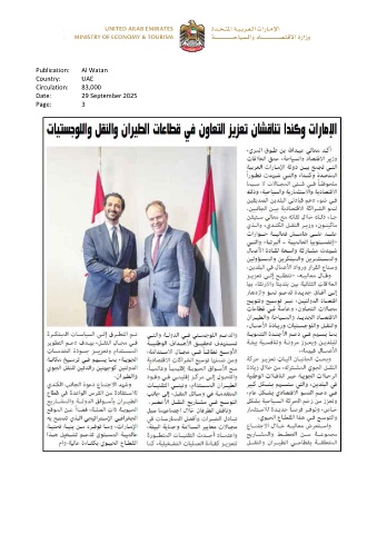 Publication: Al Watan Country: UAE Circulation: 83,000 Date: 29 September 2025 Page: 3