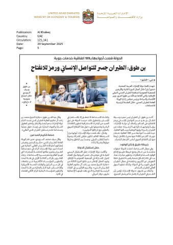 Publication: Al Khaleej Country: UAE Circulation: 121,141 Date: 29 September 2025 Page: 5