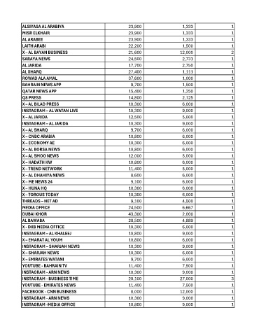 YOUTUBE - BAHRAIN TV 11,400 7,500 1