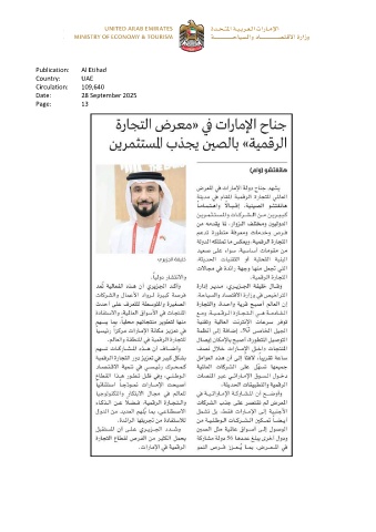 Publication: Al Etihad Country: UAE Circulation: 109,640 Date: 28 September 2025 Page: 13