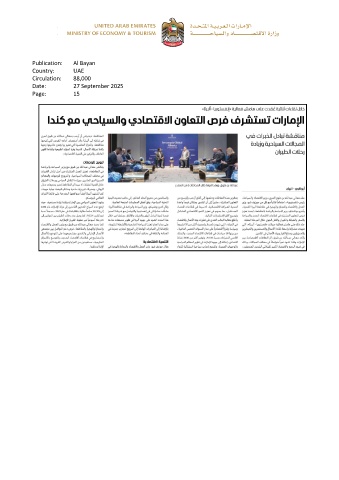 Publication: Al Bayan Country: UAE Circulation: 88,000 Date: 27 September 2025 Page: 15
