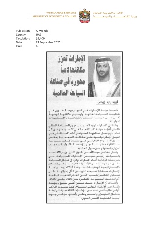 Publication: Al Wahda Country: UAE Circulation: 19,400 Date: 27 September 2025 Page: 8