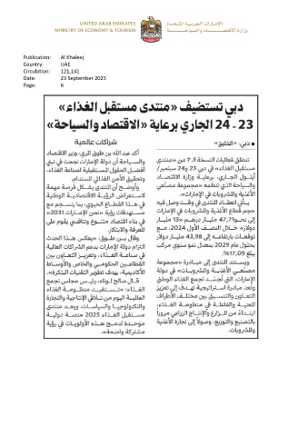 Publication: Al Khaleej Country: UAE Circulation: 121,141 Date: 23 September 2025 Page: 6