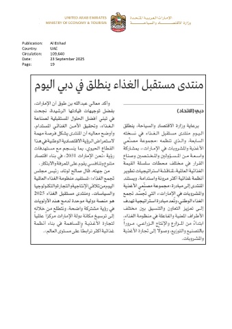 Publication: Al Etihad Country: UAE Circulation: 109,640 Date: 23 September 2025 Page: 19