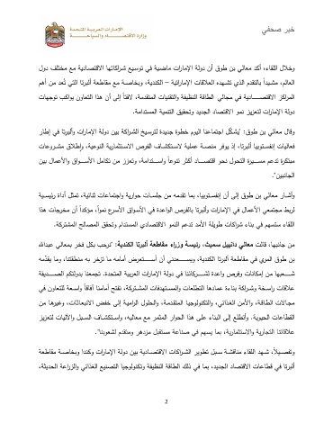 رﺎطإ ﻲﻓ ﺎﺘرﺒﻟأو تارﺎﻤﻹا ﺔﻟود نﯿﺒ ﺔﻛارــﺸﻟا ﺦﯿــﺴرﺘﻟ ةدﯿدﺠ ةوطﺨ موﯿﻟا ﺎﻨﻋﺎﻤﺘﺠا لﻛــﺸﯿ" :قوط نﺒ ﻲﻟﺎﻌﻤ لﺎﻗو