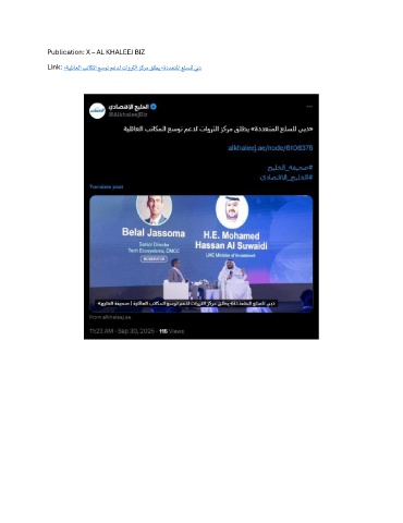 Publication: X – AL KHALEEJ BIZ Link: «ةيلئاعلا بتاكلما عسوت معدل تاورثلا زكرم قلطي »ةددعتلما علسلل يبد