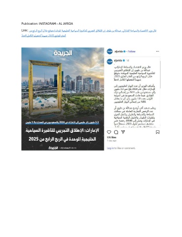 Publication: INSTAGRAM – AL JARIDA ّ Link: نم عبارلا ع برلا للاخ عقوتم ةدحولما ةيجيلخلا ةيحايسلا ةريشأتلل يبيرجتلا قلاطلإا نإ ،قوط نب اللهدبع ،يتاراملإا ةحايسلاو داصتقلاا ريزو لاق ً ً .اقحلا لماكلا اهليعفتل اديهمت ،2025 يراجلا ماعلا