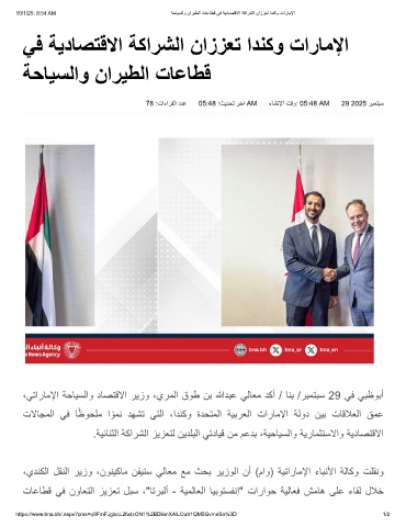 10/1/25, 8:54 AM ﺔﺣﺎﯾﺳﻟاو نارﯾطﻟا تﺎﻋﺎطﻗ ﻲﻓ ﺔﯾدﺎﺻﺗﻗﻻا ﺔﻛارﺷﻟا ناززﻌﺗ ادﻧﻛو تارﺎﻣﻹا