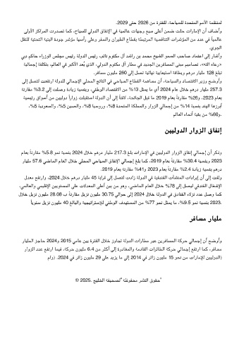 مﺎﻌﺑ ًﺔﻧرﺎﻘﻣ %5.8 ﻮﻤﻧ ﺔﺒﺴﻨﺑ 2024 لﻼﺧ ﻢﻫرد رﺎﻴﻠﻣ 217.3 ﻎﻠﺑ تارﺎﻣﻹا ﻓ ﻦﻴﻴﻟوﺪﻟا راوﺰﻟا قﺎﻔﻧإ ﻟﺎﻤﺟإ نأ ﺮﻛذو