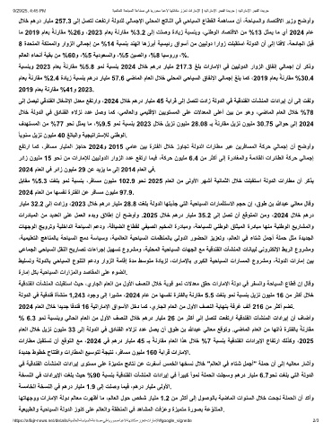 طﯾﻠﺳﺗو ﺔﻟودﻟﺎﺑ ﻲﺣﺎﯾﺳﻟا عوﻧﺗﻟا مﻋدو راوزﻟا ﺔﻣﺎﻗإ ةدﻣ طﺳوﺗﻣ ةدﺎﯾزﻟ ،تارﺎﻣﻹﺎﺑ ىرﺑﻛﻟا ﺔﯾﺣﺎﯾﺳﻟا تارﺎﺳﻣﻟا عورﺷﻣو ،ﺔﻟودﻟا تارﺎﻣإ نﯾﺑ