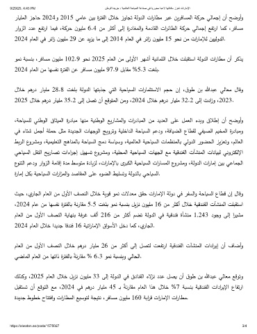 ومﻧ ﺔبسنﺑ ،رﻓﺎسﻣ نويﻠﻣ 102.9 وحﻧ 2025 مﺎﻌﻟا نﻣ ﻰﻟوﻷا رﻬﺷأ ﺔيﻧﺎمثﻟا لﻼﺧ تﻠبﻘتﺳا ﺔﻟودﻟا تارﺎطﻣ نأ ركذﯾ