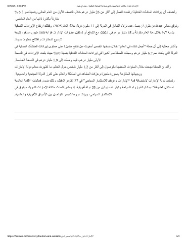 ﺔﺠﯿﺘﻧ ،ﺮﻓﺎﺴﻣ نﻮﯿﻠﻣ 160 ﺔﺑاﺮﻗ تارﺎﻣﻹا تارﺎﻄﻣ ﻞﺒﻘﺘﺴﺗ نأ ﻊﻗﻮﺘﻟا ﻊﻣ ،2024 ﻲﻓ ﻢھرد رﺎﯿﻠﻣ 45 ـﺑ ﺔﻧرﺎﻘﻣ مﺎﻌﻟا اﺬھ لﻼﺧ %7 ﺔﺒﺴﻨﺑ
