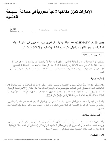 ﺔﺣﺎﯿﺴﻟا ﺔﻣﻮﻈﻨﻣ ﻲﻓ يرﻮﺤﻤﻟا ﺎھرود ﺰﯾﺰﻌﺗ ﻲﻓ تارﺎﻣﻹا ﺔﻟود ﺖﺤﺠﻧ (MENAFN- Al-Bayan)