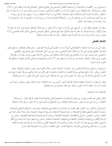 ً ﺔﻧرﺎﻘﻣ % 5.8 ﻮﻤﻧ ﺔﺒﺴﻨﺑ ،2024 لﻼﺧ ﻢھرد رﺎﯿﻠﻣ 217.3 ﻎﻠﺑ تارﺎﻣﻹا ﻲﻓ ﻦﯿﯿﻟوﺪﻟا راوﺰﻟا قﺎﻔﻧإ ﻲﻟﺎﻤﺟإ نأ ﺮﻛذو