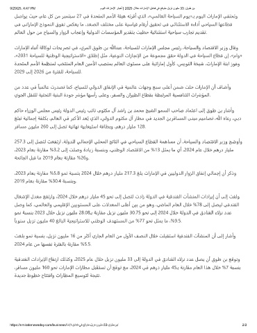 ،2023 مﺎﻌﺑ ﺔﻧرﺎﻘﻣ %5.8 ﻮﻤﻧ ﺔﺒﺴﻨﺑ 2024 لالﺧ ﻢﻫرد رﺎﻴﻠﻣ 217.3 ﻎﻠﺑ تارﺎﻣإلا ﻲﻓ ﻦﻴﻴﻟوﺪﻟا راوﺰﻟا قﺎﻔﻧإ ﻲﻟﺎﻤﺟإ نأ ﺮﻛذو