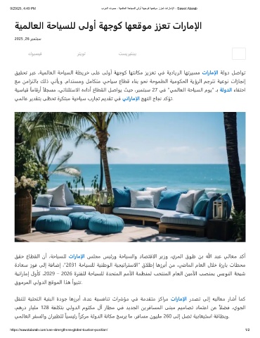 9/29/25, 4:49 PM برﻌﻟا توﺻ - ﺔﯾﻣﻟﺎﻌﻟا ﺔﺣﺎﯾﺳﻠﻟ ﻰﻟوأ ﺔﮭﺟوﻛ ﺎﮭﻌﻗوﻣ ززﻌﺗ تارﺎﻣﻹا - Sawot Alarab
