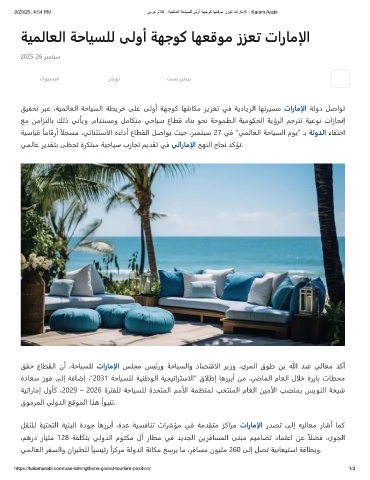 9/29/25, 4:54 PM ﻲﺑرﻋ مﻼﻛ - ﺔﯾﻣﻟﺎﻌﻟا ﺔﺣﺎﯾﺳﻠﻟ ﻰﻟوأ ﺔﮭﺟوﻛ ﺎﮭﻌﻗوﻣ ززﻌﺗ تارﺎﻣﻹا - Kalam Arabi