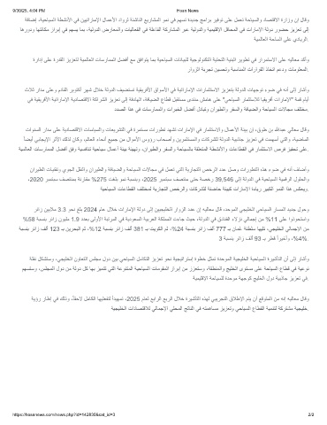 ،2020 رﺑﻣﺗﺑﺳ فﺻﺗﻧﻣﺑ ﺔﻧرﺎﻘﻣ %275 تﻐﻠﺑ وﻣﻧ ﺔﺑﺳﻧﺑو ،2025 رﺑﻣﺗﺑﺳ فﺻﺗﻧﻣ ﻰﺗﺣ ﺔﺻﺧر 39,546 ﻰﻟإ ﺔﻟودﻟا ﻲﻓ ﺔﯾﺣﺎﯾﺳﻟا ﺔﯾﻣﻗرﻟا لوﻠﺣﻟاو