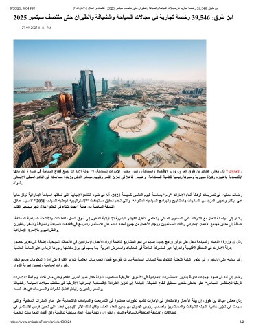 9/30/25, 4:04 PM 7 تارﺎﻣﻻا | لﺎﻣﻋا و دﺎﺻﺗﻗا | 2025 رﺑﻣﺗﺑﺳ فﺻﺗﻧﻣ ﻰﺗﺣ نارﯾطﻟاو ﺔﻓﺎﯾﺿﻟاو ﺔﺣﺎﯾﺳﻟا تﻻﺎﺟﻣ ﻲﻓ ﺔﯾرﺎﺟﺗ ﺔﺻﺧر 39,546 :قوط نﺑا