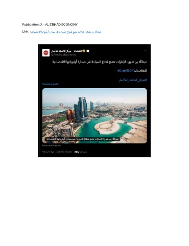 Publication: X – AL ETIHAD ECONOMY Link: ةيداصتقلاا اهتايولوأ ةرادص يف ةحايسلا عاطق عضت تاراملإا :قوط نب اللهدبع