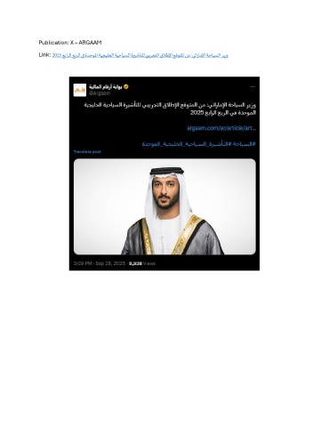 Publication: X – ARGAAM Link: 2025 عبارلا عبرلا يف ةدحولما ةيجيلخلا ةيحايسلا ةريشأتلل يبيرجتلا قلاطلإا عقوتلما نم :يتاراملإا ةحايسلا ريزو