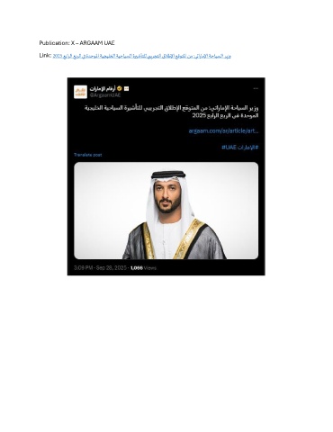 Publication: X – ARGAAM UAE Link: 2025 عبارلا عبرلا يف ةدحولما ةيجيلخلا ةيحايسلا ةريشأتلل يبيرجتلا قلاطلإا عقوتلما نم :يتاراملإا ةحايسلا ريزو