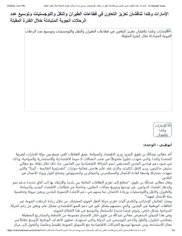 9/30/25, 4:27 PM ﺔﻠﺑﻘﻣﻟا ةرﺗﻔﻟا لﻼﺧ ﺔﻟدﺎﺑﺗﻣﻟا ﺔﯾوﺟﻟا تﻼﺣرﻟا ددﻋ ﻊﯾﺳوﺗو تﺎﯾﺗﺳﺟوﻠﻟاو لﻘﻧﻟاو نارﯾطﻟا تﺎﻋﺎطﻗ ﻲﻓ نوﺎﻌﺗﻟا زﯾزﻌﺗ نﺎﺷﻗﺎﻧﺗ ادﻧﻛو تارﺎﻣﻹا - Al Wahda News