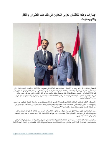 يتلاو ،ادنكو ةدحتملا ةيبرعلا تاراملإا ةلود نيب عمجت يتلا تاقلاعلا قمع ،ةحايسلاو داصتقلاا ريزو ،يرملا قوط نب اللهدبع يلاعم دكأ