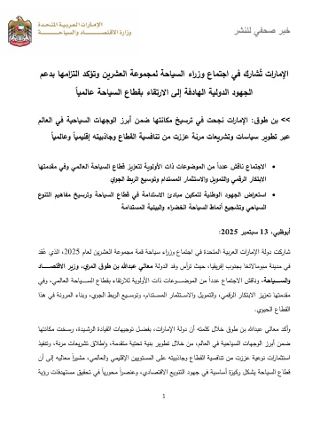 دﻘﻋ يذﻟا ، 2025 مﺎﻌﻟ نﯿرـﺸﻌﻟا ﺔﻋوﻤﺠﻤ ﺔﻤﻗ ﺔﺤﺎﯿـﺴ ءارزو عﺎﻤﺘﺠا ﻲﻓ ةدﺤﺘﻤﻟا ﺔﯿﺒرﻌﻟا تارﺎﻤﻹا ﺔﻟود تﻛرﺎـﺸ