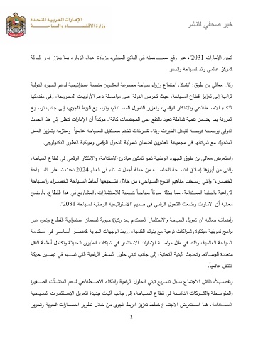 ." 2031 ﺔﺤﺎﯿﺴ ﻠﻟ ﺔﯿﻨطوﻟا ﺔﯿﺠﯿﺘارﺘﺴﻻا " مﯿﻤﺼ ﻲﻓ ﻲﻤﻗرﻟا لوﺤﺘﻟا تﻌﻀو تارﺎﻤﻹا نأ ﻪﯿﻟﺎﻌﻤ