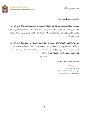 ﻲﻓ نﯿﻤﺄﺘﻟاو ﺔﯿﻟﺎﻤﻟا عﺎطﻗ ءﺎﺠو ،% 15.6 تﻐﻠﺒ ﺔﻤﻫﺎﺴﻤ ﺔﺒﺴﻨﺒ ﻰﻟوﻷا ﺔﺒﺘرﻤﻟا ةرﺎﺠﺘﻟا عﺎطﻗ لﺘﺤا ، 2025 مﺎﻋ